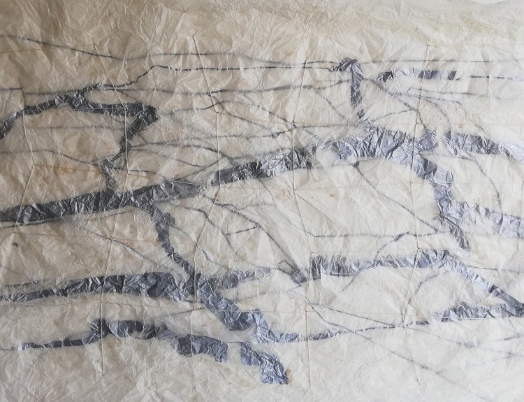 time within layered sheets of tissue and heavy printmaking papers. Printmaking and the